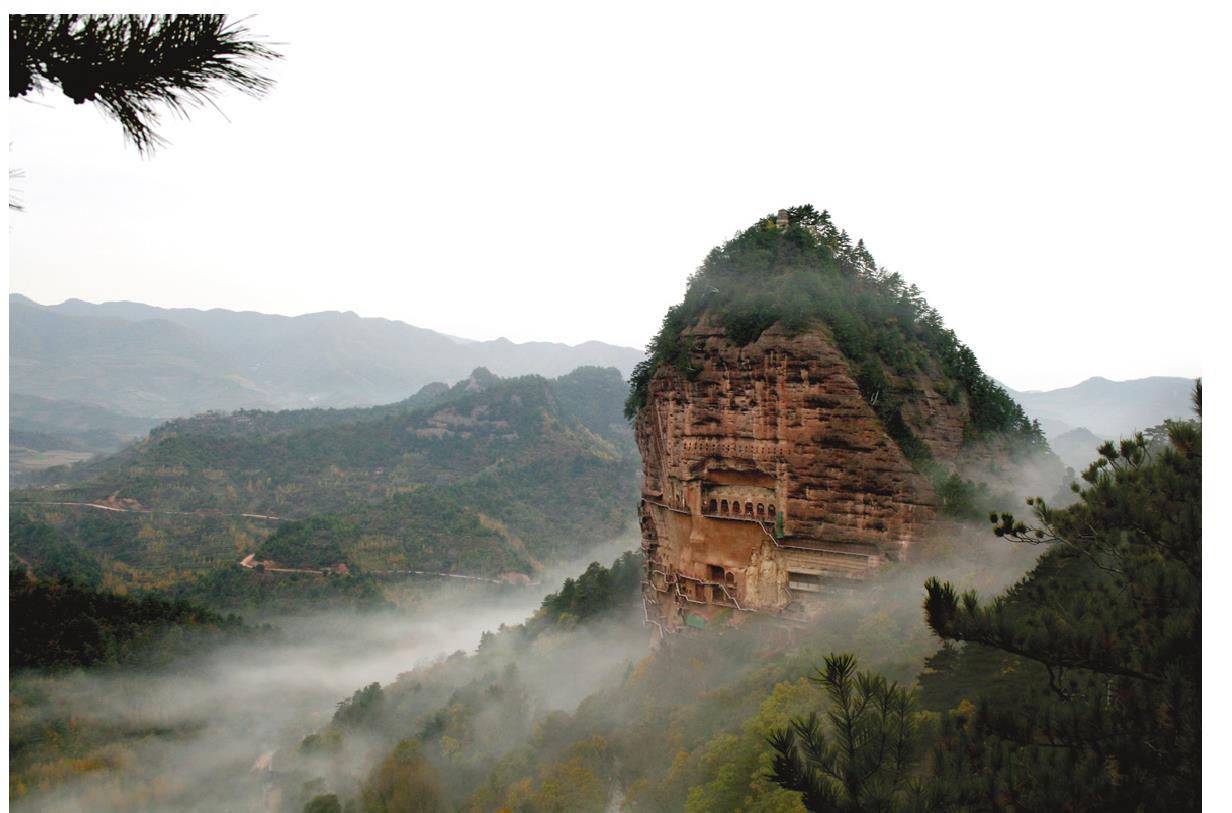 | 释义 | 麦积山景区旅游景点。位于秦岭西端北侧,距麦积城区 28 公里,麦积山形上突下小,望之团团,如农家堆积的麦垛之状,故而得名麦积山,以险、奇、秀和独特的石窟文化而著称。其山海拔1742 米,相对比高 142 米,著名的麦积山石窟便开凿在 20~80 米高的悬崖峭壁上,洞与洞之间由栈道相连。麦积山石窟为中国四大石窟之一,以其独特的泥塑艺术独树一帜。据史料记载,麦积山石窟是从公元 384 年到 417 年的十六国后秦时期开始凿窟造像,经北魏、西魏、北周、隋唐、五代、宋、元、明、清等 10 多个朝代的不断开凿、重修,遂成为仅次于敦煌莫高窟的我国第二大艺术宝窟,现存 221个洞窟中,共保存了自公元 4 世纪末到 19 世纪初的各代泥塑、石雕 10632 件,壁画 1000 多平方米,北朝“崖阁”8 座。以其精美的泥塑艺术闻名中外,这里的泥塑可分为高浮塑、圆塑、影塑、壁塑 4 种,大的高达 16 米,小的仅 10 多厘米,不论北魏时期的“秀骨清像”,还是隋唐以来的“丰满圆润”,均神态各异,栩栩如生。被誉为“东方艺术雕塑馆”“丝绸之路东端的璀璨明珠”。麦积山石窟的惊险陡峻,在中国现存石窟中是罕见的。石窟布局独具匠心,大都开凿在 20~30 米及至 70~80 米高的悬崖峭壁上,层层叠叠。最大洞窟横宽 30 多米,最小洞窟仅能容身,洞窟之间全靠架设在崖面上的凌空栈道连接通达,惊险雄伟。麦积山景区风景秀丽,翠柏苍松密布,山清水秀、溪石相映成趣,素有“陇上林泉之冠”的美称。每当夏秋之季阴雨霏霏或雨后初晴,山岚缭绕、烟雨蒙蒙,麦积奇峰时隐时现,呈现出“麦积烟雨”之奇观。
