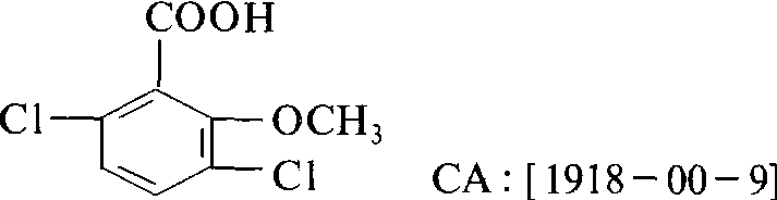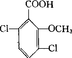 | 释义 | 麦草畏dicamba具内吸传导作用的激素型选择性苯甲酸类除草剂。化学结构式: