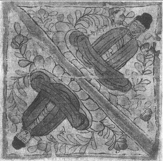 | 释义 | 麻画延受命菩萨像唐代。纵37.5厘米,横37.5厘米。该画面为两尊菩萨像分居在一块正方形麻布的中央对角线的两侧。头顶两角,身首以相对的方向结跏跌坐在莲花座上,两边都饰以菩提花叶,两尊菩萨发髻高束,身材修长,胸背挺直,双目平视,披朱色外衣,内着贴身帔帛,除上唇、外衣,其余皆平涂淡赭色。其中一面在菩萨像旁墨书“延受命菩萨”;另一面墨书一“延”字。该图1902年至1914年间发现于新疆雅尔湖,现藏旅顺博物馆。