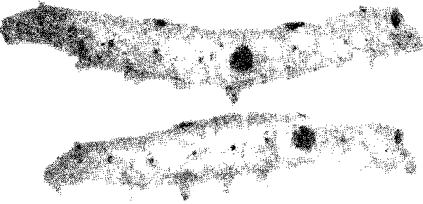 图2 黄僵病病蚕症状 取病蚕血液用显微镜检查,可看到浮游在血液内的短菌丝。从感染到病死的时间,黄僵病比白僵病稍长。4龄病蚕,5天后陆续死亡;5龄病蚕,7天后陆续死亡;1~4龄病蚕,均经过眠期至下1龄才死亡。5龄起蚕感染时,大多在上蔟时及蔟中乃至茧中死亡;5龄第4日后感染的,都能结茧,最后在蛹期死亡。蚕死后,因体内菌丝的生长发育而开始硬化。同时体色也逐渐变为粉红色,死后约经1~2日,长出气生菌丝,长达1厘米。菌丝往往形成束状,当它充分伸长生长后,就会在菌丝的先端聚集形成很多分生孢子,使尸体呈乳黄色。黄僵病呈现病斑时,菌丝还未充分伸入体内,有时病斑会随蜕皮而消失、痊愈,这种现象称“治愈性感染”。 诊断及防治 黄僵病的诊断主要根据病蚕体壁上出现的黑褐色病斑、血液内短菌丝形态、尸体体色呈桃红色、气生菌丝长而多数成束状生长以及分生孢子的形态色泽等特征而确定。 黄僵菌因能寄生多种昆虫,很多桑园害虫也能被其寄生,故桑园害虫的驱除与本病的预防密切相关。养蚕生产中应做好桑园除虫工作,防止桑园内患病昆虫随桑叶带进贮桑室及蚕室。其他防治措施参照白僵病。 |