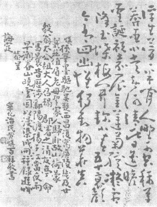 | 释义 | 黄慎草书诗册清。纸本。纵30.3厘米,横23.9厘米。山东省济南市博物馆藏。黄慎(见《黄慎草书送汪瞻侯归姑苏诗轴》条目)书。此册是黄慎所作诗画合册中诗册部分,共12页,收七律诗23首,均题于画的对页上。前11页各录诗二首,题于诗末。最后一页,诗一首,无题,后有一则小楷题记:“慎挟笔墨,驱驰吴楚西昌,复寓广陵,几及廿载。兹值负老母,挈家人,归卧故山,荷蒙毅翁太公祖大人召榻郡斋之清友亭,命写曩昔历鄱阳、渡扬子江。当夜雨早潮,春山晓云,因以漫染成册,并录游草,恭呈诲定。宁化治民黄慎百拜敬书。”此册乃黄氏50岁时所作。诗中时有对生活贫困的悲欢描述及交游活动,反映了黄氏漂泊异地的感受。草书行走龙蛇,连绵回旋,笔力圆润遒劲,结字疏密,行气断续,墨色淳厚清逸,典雅清新,娟秀妍美,别具风采。