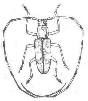 | 释义 | 黄星天牛yellowspotted longicorn beetlePsacothea hilaris (Pascoe),又称长角天牛、黄点天牛、剥皮蛀等。鞘翅目,天牛科。分布于中国华东及河北、广东、四川、云南等地;日本和朝鲜半岛也有分布。寄主有桑、无花果、面包果、油桐。成虫体长15~23 mm,体翅黑色,密生黄色短毛,鞘翅上有大小不一的黄色斑纹。幼虫体圆筒形,黄白色,长22.5~32mm,前胸硬皮板黑色长方形,两侧角各有一褐色三角形凹入。成虫食害桑叶、叶脉、嫩枝、枝皮,幼虫在桑枝干皮下蛀食。一年发生1~2代,以幼虫在桑树干内越冬。防治方法,捕捉成虫,刮杀卵、幼虫;农药(50%杀螟松250倍或20%灭蛀灵50倍液)喷树干。
