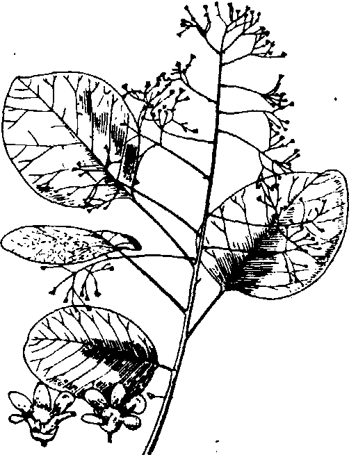 | 释义 | 黄栌huangluCotinus coggygria亦称栌木。漆树科,黄栌属。灌木或小乔木。株高3~5米。树皮暗褐色。小枝紫褐色。树冠圆形。单叶,互生,倒卵圆形、卵圆形或圆形,先端圆或微凹,基部圆形或宽楔形,全缘,两面有灰色柔毛,下面较密。花杂性,排列成顶生圆锥花序,混有多数不育花,不育花早落,但花梗伸长,且被毛,呈羽毛状。花期4~5月。核果,肾形。入秋后叶变红色,称为红叶,供观赏。分布于我国北部和中部。木材黄色,可提黄色染料; 树皮、叶可制取烤胶。枝、叶入药,有消炎、清湿热之效。 黄栌cinereous smoketreeCotinus coggygriavar.cinerea,别名红叶、黄道栌。漆树科黄栌属落叶灌木或小乔木。染色体数2n=30。高达5m,树冠多呈圆球形。树皮灰褐色,小枝赤褐色;叶互生,倒卵形或卵圆形,长3~8cm,全缘;圆锥花序顶生,花杂性,花期5月。果序长约20cm,核果肾形,红色,果期8月。产中国华北、西北、华中及华东等地,欧洲东南部也有分布。喜阳,稍耐半阴,耐旱、耐寒。适应性强,在瘠薄或碱土上均能生长,忌水湿及粘重土壤。对二氧化硫有较强抗性,滞尘性强。秋季温度降至5℃时,日温差在10℃以上,秋叶可4~5天后转红。在低海拔平原,因温差不够,难于观赏到红艳秋叶。