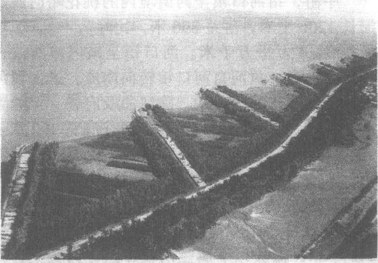 黄河大堤丁坝 护滩控导工程是指为了控导主溜,护滩保堤,依托河床滩岸修筑坝、垛。它与险工互相配合,控制河势,稳定中水河槽,有利于防洪、涵闸引水、航运和滩区群众生产。目前已修建护滩控导工程177处,坝垛护岸3033道,工程长度279.8千米,占河道长度35%。工程布设采取“短丁坝、小垱距、以坝护弯、以弯导流”的形式。30多年来,黄河下游河道防洪整治效果显著,例如陶城埠以下河道已得到控制,河势稳定;东坝头至高村河段河道正向规顺方向发展。 分滞洪工程包括北金堤滞洪区、东平湖水库、北展工程和南展工程4个部分。北金堤滞洪区是防御黄河大洪水的重要措施,1951年开辟,1976年改建。分洪能力10000立方米/秒,滞洪区面积为2316平方千米,有效分洪库容20亿立方米。东平湖水库1958年兴建,现为处理黄河和大汶河洪水的滞洪水库,总面积632平方千米。用于黄河的有效滞洪库容为20亿立方米。北展工程主要是展宽济南市北店子到洛口一段窄河道,以减轻洪水、凌汛威胁。展宽区面积106平方千米,有效滞洪库容3.9亿立方米。南展工程主要是展宽山东省博兴县麻湾至利津县王庄一带窄河道,以减轻洪水、凌汛威胁,展宽区面积123.3平方千米,有效滞洪库容3.3亿立方米。 水库工程包括三门峡水库、陆浑水库、故县水库。三门峡水库是一座以防洪为主的综合利用水库,控制黄河流域面的92%和山陕间北干流及泾、洛、渭河两个主要洪水来源区。335米高程以下现有有效库容约59亿立方米。该水库对黄河下游防洪防凌发挥了很大作用。陆浑水库是一座以防洪为主的综合利用水库。控制流域面积3740平方千米,防洪库容6.5亿立方米。故县水库控制流域面积5635平方千米,防洪库容5亿立方米。小浪底水利枢纽是黄河下游防洪体系的重要工程,可控制流域面积69.4万平方千米。 通讯设施是黄河下游堤防加固和防洪必备的设施。在黄河下游以郑州为中心建有有线和无线电话通讯网。在黄河水利委员会设立通讯管理局,河南、山东河务局设立队、站等专职机构。黄河南北两岸设有有线电话通讯干线和支线与各级修防部门及水文站连接。三门峡库区至黄河入海口建有无线电话通讯网。 |