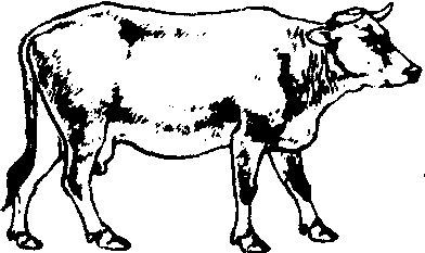 图460 黄牛 黄牛牛属、普通牛种。分布于中国各地。分为中原黄牛、北方黄牛、南方黄牛三大类型。中原黄牛分布于广大中原地区,有秦川牛、南阳牛、鲁西牛和晋南牛等;北方黄牛分布于内蒙古、东北、华北和西北,有蒙古牛、延边牛、复州牛和哈萨克牛等;南方黄牛分布于东南、西南、华南、华中及陕西南部,有巴山牛、琼雷牛、温岭高峰牛、闽南牛、大别山黄牛、邓川牛等。中国黄牛体质健壮、耐粗饲、抗病力强,力大耐劳,对各地自然环境条件极为适应。主要作役力,还可供给肉和乳。 黄牛yellow cattleBos taurus domestica Gmelin,中国数量最多的家牛之一。牛属。役用为主或役肉兼用。根据体型和生产性能的差异,一般分为蒙古牛、华北牛和华南牛三大类型。通常体型由南向北趋大,而南方牛较多保留瘤牛特征。毛色以黄为主,也有黑色或红棕色。体质强健结实。耐寒,耐劳,抗病力强。肉用性能较好。性成熟较早,一岁半后可以配种,性周期平均21天,发情持续18~36 h,妊娠期280~285天。寿命约25岁。秦川牛、南阳牛、鲁西牛、晋南牛和延边牛为中国著名五大地方优良黄牛品种。
