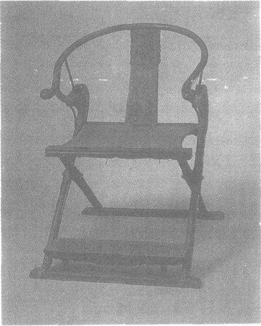 | 释义 | 黄花梨圆后背交椅明。面长69.5厘米,宽47.5厘米,通高104厘米。北京故宫博物院藏。圈椅式圆背扶手,扶手头向外侧旋转成扁圆状。软屉、足下设长条形托泥,并置一踏床,可翻转、拆卸、自由使用。背板上部刻一由双螭构成的如意头纹。扶手、腿、足与托泥等交构处均由铁饰件进行加固。此椅是明代交椅的基本样式,纹饰、图案亦为明式家具中最常见的。