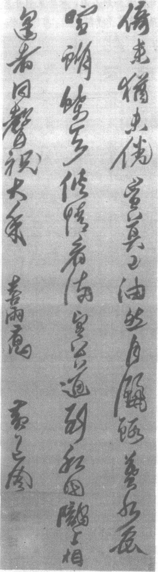 | 释义 | 黄道周草书喜雨诗轴明。绫本。纵173.8厘米,横49.8厘米。北京故宫博物院藏。黄道周(见《黄道周楷书诗卷》条目)书。黄道周的书法别具一格,与其严冷方刚,不媚流俗的性格相映成趣,在晚明崇尚董派柔媚平逸的书风中,独树一帜。此幅书法,结体多取横斜之势,似欹反正;用笔方劲峭厉,风格遒劲奇逸,变化多姿,为黄道周草书面貌代表。
