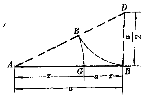 黄金分割 黄金分割又称“黄金律”、“中外比”。把长为a的直线段分成长分别为x和a-x两部分,使x:a=(a-x):x,这样的分割称为黄金分割。可以算得x:a=0.618…。它可直接用于优选法。 黄金分割一个初等几何作图问题。该问题是:分已知线段为两部分,使其中一部分是全线段和另一部分的比例中项。具体作法为:设已知线段为AB,作BD⊥AB,并使BD=AB/2,连接DA,在DA上截取DE=BD,在AB上截取AG=AE,则G点即为所求分点。可以用勾股定理证明AG2=AB·BD,而且AG=( |