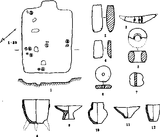〔1.珠山遗址第6号房址平剖面图❶ |