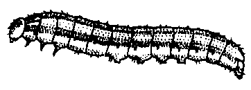 幼虫 黏虫 黏虫昆虫纲鳞翅目夜蛾科害虫,又名梯枝虫、麦蚕。中国2000多年前就有黏虫为害作物的记载,大规模防治始于20世纪50年代。成虫体长17~20 mm,翅展36 ~45 mm, 卵长约0.5 mm,幼虫共有6龄。老熟幼虫体长约38 mm。蛹体长约20 mm。卵期3~6天,幼虫期18~29天,蛹12~17天,成虫寿命11~14天。幼虫每头一生约食取栗或麦叶120多cm2,90%为5~6龄幼虫所食。成虫适宜温度15~30℃,相对湿度为90%。可采取诱杀成虫、诱蛾产卵、化学防治等措施进行防治。 |