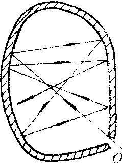 | 释义 | 黑体heiti又称绝对黑体。对任何波长的电磁波吸收本领均为1的物体。它能在任何温度下全部吸收投射到其表面上的一切波长的能量。它的吸收本领在各种物质中为最大,同时,它的发射本领也比同温度下的任何其他物体都大。自然界中并不存在真正的黑体。即使吸收本领最大的煤烟和黑色珐琅质,对太阳光来说其吸收本领也只有0.99。因此黑体实际上是物理学中的一个理想模型。通常用吸收本领α(λ,T)为任意值的不透明材料做成一个封闭空腔,在空腔上开一个小孔,作为理想黑体的模拟物。如图示,当射线通过小孔进入空腔后,将在空腔内发生多次反射,每反射一次,容器的内表面就吸收一部分能量。设最初进入小孔时的能量为1,经过n次反射后,再由小孔穿出腔外时的能量将为(1-α)n。当小孔的面积比空腔内表面的总面积小很多时,n很大,(1-α)n的值非常小。若把空腔内壁涂黑,从小孔射进的能量将几乎全部被吸收。在空腔外的观察者看来,这个小孔就和黑体一样。若把空腔加热,则从小孔发射出来的辐射也将和黑体的辐射很接近。在实验中研究黑体辐射时用的就是这种模拟物。黑体看上去并不一定是黑的,只有当其自身辐射的可见光非常微弱时看上去才是黑的。而有些可近似看作黑体的物体,由于有较强的辐射,看上去还很明亮,如炼钢炉膛外壁上的小孔。有时一些发光的天体(如太阳、北极星等也被当作黑体来处理)。