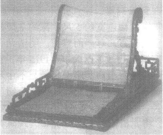 | 释义 | 黑漆描金靠背没有座腿的坐具。又称欹床。它的制作在宋、明史书及绘画中就有记载和描绘。现珍藏于北京故宫博物院的黑漆描金填香靠背,为清代前期的贡品。它由底架、靠背、支架三部分组成。靠背依据人体脊椎骨的曲线设计成波浪型。靠背面由丝绳编结成斜方格图案,木制边框绘有万字锦、蝙蝠纹及蕃草花卉等。活动支架由圆形木料作成,能根据使用者的要求来调节靠背的角度,角度分三个 档 次,即110 度,115度,120 度。不用时还可将其放倒。底架宽82.5厘米,通长153.5厘米,实际是由 靠背前和靠背后两部分拼成,中间用榫铆连结为一体,摘下榫头,放倒靠背,可折叠在一起,放在长宽各90厘米的箱子里,携带方便。靠背前为座面,由八块名贵的香料片拼接而成,上面线刻填金云蝠和莲花纹,四周附以线刻填金回纹边。后部为靠架底板,也用香料拼成斜方格形,四角线刻填金西蕃莲纹饰,中心是3条夔龙,自然生动。底座四周为黑漆描金云蝠花纹。左右和背后边沿上安有夔纹形围栏,围栏空隙中,用香料作成半厘米厚的薄片,镂雕出夔纹,镶在当中。这件坐具使用香料之多,是较为罕见的。它多在床塌或席地上使用,如在树阴下乘凉,不仅舒适,香料散发的幽香,使人心旷神怡。如此昂贵的器用,只有皇家才可享用。