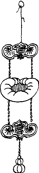 鼻烟铺幌子,绘有黄色图案中间,挂有一个鼻烟壶,使人一目了然,示意铺内出售的产品。