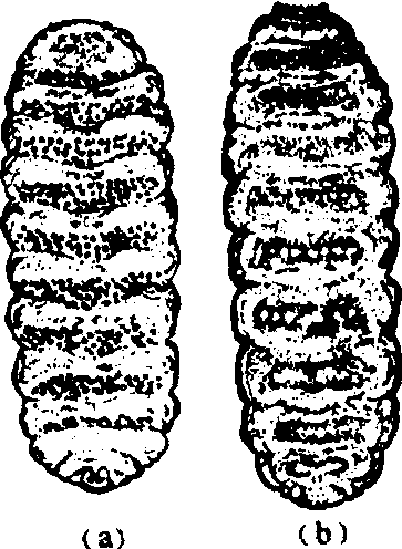 | 释义 | 鼻蝇蛆病sheep bots or head maggot蝇蛆寄生在马、驴或绵羊的鼻腔及其附近的腔窦内,引起慢性鼻炎为特征的病证。又称鼻蝇病。夏季晴天成虫雌蝇多侵袭羊群及马匹,在其鼻腔内产卵孵化为幼虫,向鼻腔深部和额窦移行,可寄生9~10个月。幼虫成熟后随动物喷嚏而落入地面,钻入土内化蛹,羽化为成蝇(图1)。证见流鼻,咳嗽,喷嚏,频频摇头或鼻孔擦地,或骚动不安互相拥挤,呼吸困难。蝇蛆(图2)在鼻腔和额窦内移动时刺激鼻腔,粘膜肿胀,鼻流浓涕或脓血涕。鼻液干涸后,在鼻孔周围结痂,堵塞鼻孔,出现呼吸困难。蝇蛆钻到颅腔累及大脑,则可出现运动失调,转圈运动,甚至发生痉挛、麻痹。草料减少,消瘦,气血不足,营养不良。口色青白,脉细弱,治宜杀灭鼻蝇蛆为主。选用烟叶煎剂灌注(烟叶加水,煎熬去渣,每只羊六滴);或选用百部浓煎滴入鼻腔;或选用藜芦10份,牙皂1份,共末吹鼻,用量约1克,治羊鼻蝇蛆有效。成蝇飞翔季节,采用鼻罩防护,以防成蝇在鼻孔产卵。