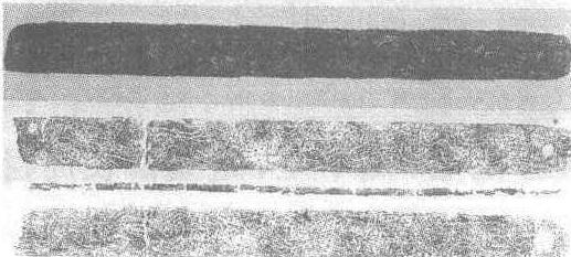 东汉。长23.72厘米,宽2.2厘米,厚0.4厘米。1973年广西壮族自治区梧州郊区旺步1号墓出土。广西壮族自治区梧州市博物馆藏。此尺用铜制成,边角有磨损剥蚀,正背面分别阴刻夔龙凤纹饰,未刻分寸,只在一侧凹刻有十寸,其一端有一穿孔。