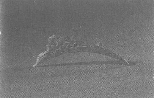 | 释义 | 龙形玉觿战国晚期。长11.5厘米。1977年安徽省长丰县杨公乡墓葬出土。安徽省博物馆藏。玉料为青玉,浸蚀严重,体扁平呈“C”形,下端较尖,上端有一镂空的张嘴龙首,体刻绳索纹。关于此物的用途尚不完全清楚,综合起来有下列说法。1.《礼记》载:“子事父母,左佩小觿,右佩大觿。”注:“小觿解小结,觿貌如锥。”据此,许多人都认为它是一件装饰物,更是解结用的实用器,因而将其命名为“解结锥”。2.佩带之用,是古人佩带兽牙的遗风,随着佩牙饰的人增多,就产生了用美丽的玉做成的仿制品。3.童子佩之能解决难题,引申为增智益慧。实际认为这是“解结”的寓意。