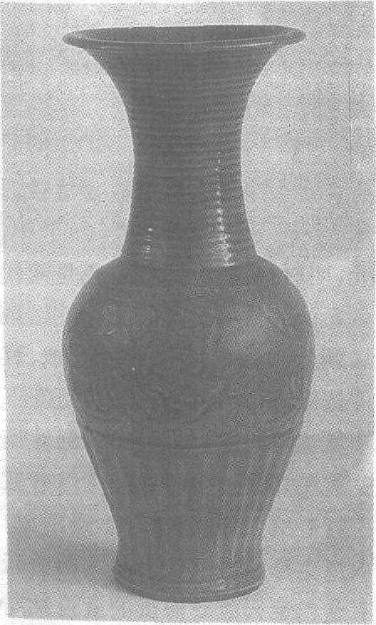 | 释义 | 龙泉窑粉青釉缠枝牡丹纹瓷瓶元。高45.7厘米。1970年内蒙古自治区呼和浩特白塔村古城遗址出土。北京中国历史博物馆藏。龙泉窑在浙江省龙泉,已发现的窑址上百处。创烧于北宋早期,盛于南宋晚期,以烧制青瓷为主。元代龙泉窑瓷继续生产,产品不仅畅销国内,而且远销海外。此时制瓷工艺已趋向简单化,瓷胎变厚,釉层较薄,普遍采用装饰花纹。此瓶撇口,长颈,鼓腹,胫部内收,足微向外撇,器形高大端正,颈部刻满弦纹,腹部划缠枝牡丹花,下腹至底凸雕一周莲瓣纹。通体施粉青釉,釉色青绿淡雅,如青玉一样的艺术效果,是元代龙泉窑的典型作品。
