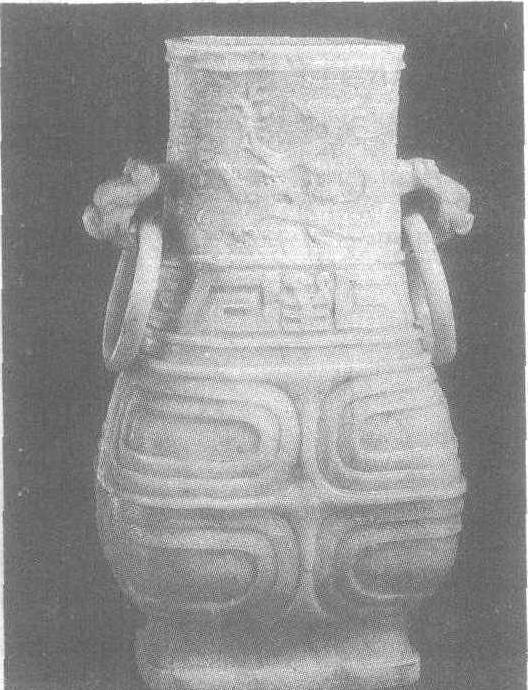 | 释义 | 龙纹活环玉尊元。高22.9厘米,口径6.2—8.2厘米。北京故宫博物院藏。青灰色玉料,局部有黑色及浅黄色斑。形制为平沿、直颈、宽腹、圈足,颈部有对称的两个兽耳,下衔活环,造型仿商周青铜器形制。颈部隐起两条云龙,其空隙处填以“工”字纹。腹部有隐起的回纹、十字纹、王字纹及阴刻的云龙纹。近底处饰三角几何图案。全器纹饰繁复而严谨,雕工精细,造型规整,可能是元代皇室用器。