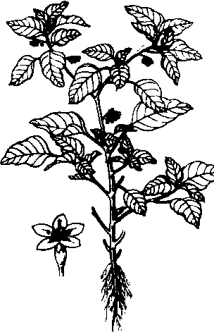 龙葵 龙葵别名黑天天、天茄子、苦葵、野辣椒、黑茄子、野葡萄、惹子草、七粒扣、乌疗草。一年生草本,高20—60厘米。茎多分枝。叶互生卵圆形。聚伞花序侧生或腋生,花白色。果为浆果,紫黑色。全疆有分布。具有清热解毒、利尿消肿的功能。药用地上部分。主治疮疖痈肿、食道癌、胃癌、肝癌、痢疾、慢性气管炎等病症。杀虫植物,对棉蚜、红蜘蛛有效。 龙葵茄科一年生草本植物。高1 m,茎近无毛。 单叶互生,叶卵形,长4~10 cm,先端钝,基部楔形,全缘或具波状粗锯齿4~5对。叶柄长2~2.5 cm。短蝎尾状花序,腋外生,具3~6(10)花,花序梗长2~4 cm,花梗长0.8~1.2 cm。花冠白色,长0.8~1 cm。浆果球形,径0.8~1 cm,果蓝黑色,味甜微苦。花期5~8月,果期7~11月。产内蒙古、河北以南省区。全株入药,散瘀消肿,清热解毒。茄属1200种,分布全世界热带、亚热带。中国产41种。全属不少种类供观赏、药用和蔬菜。 |