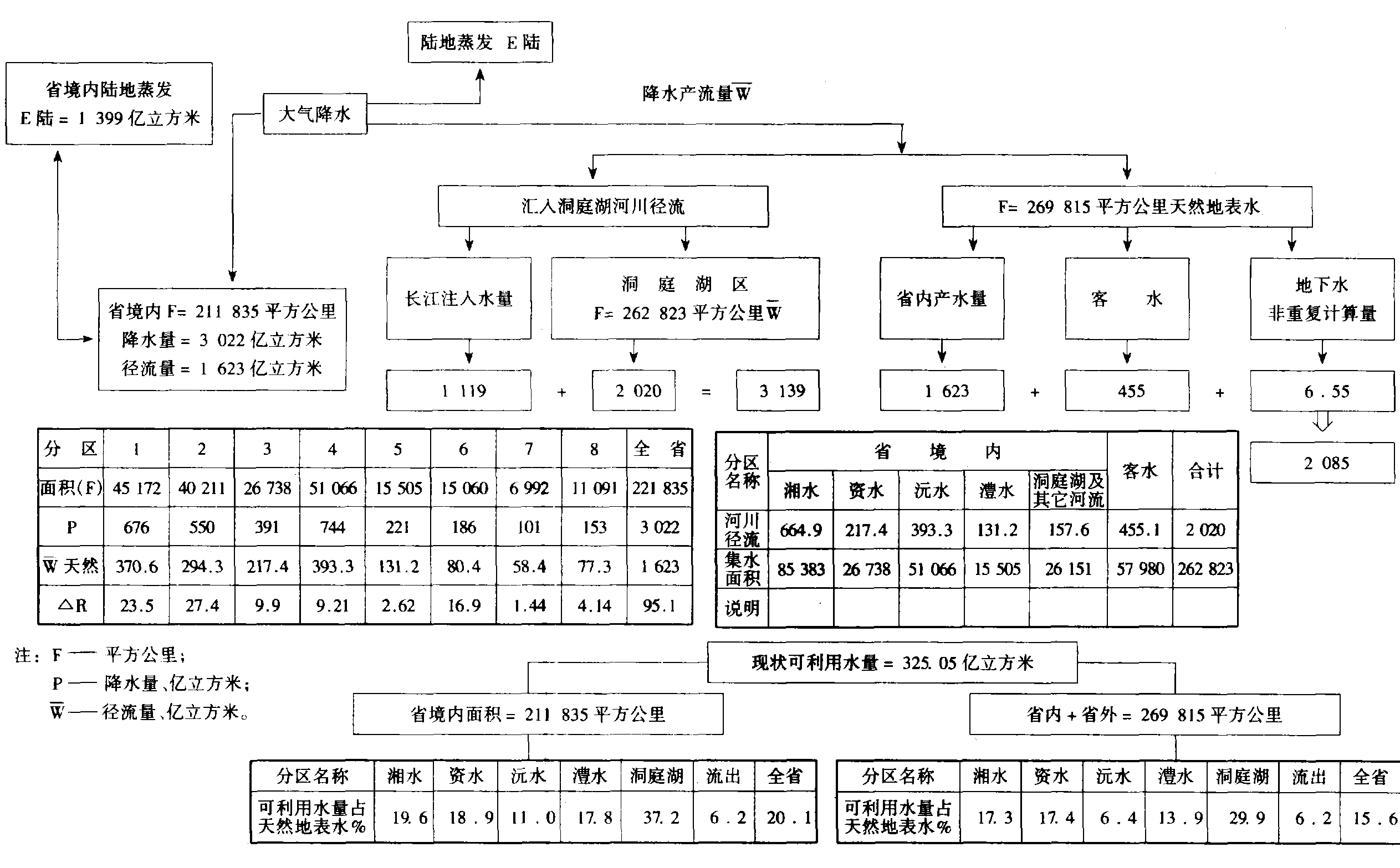 (一)地表水湖南省地表水资源由本境水资源、客水资源和过境水资源三部分组成。 表1-3-2 湖南省及洞庭湖水系水资源