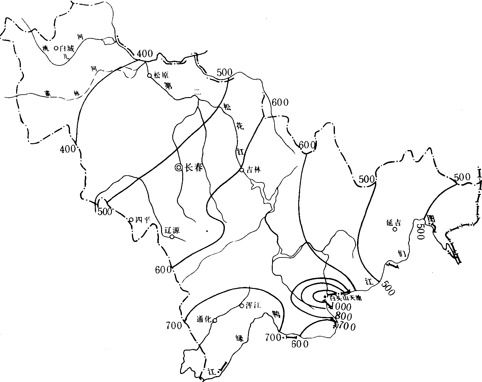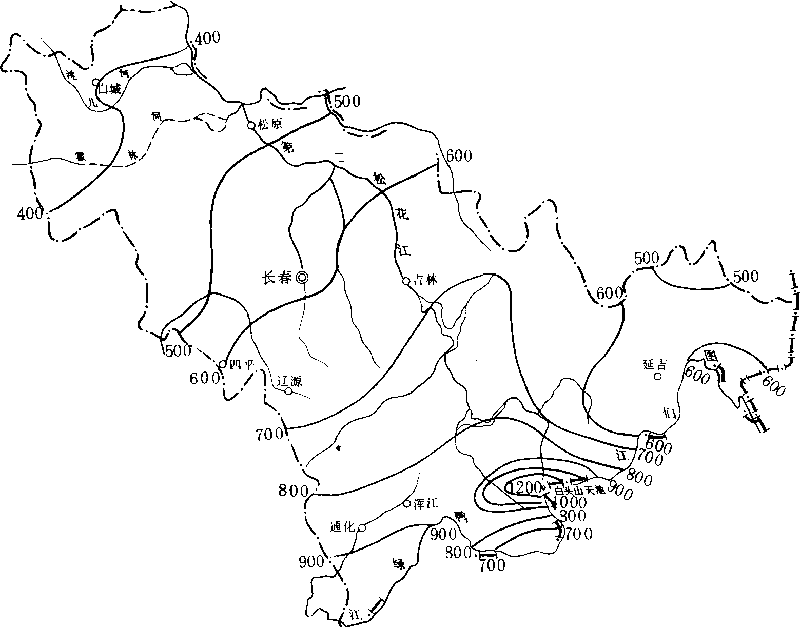 (6) 春季降水量变率。春季降水量变率普遍较大,全省各地在20%以上。白城地区、长春和四平地区在30%以上,白城地区西北部都在40%以上,其中白城、洮安、镇赉高达44%。春季降水量变率如此之大,是造成这些地区易于发生严重干旱的重要原因。其他地区均在30%以下,变率也较大,对春季农业生产的影响也是显而易见的。 (7) 夏季降水量变率。夏季降水量变率在四季中最小。但在地域分布上不连续。总的趋势是西部地区大,东部地区小。长春地区北部、白城地区东部、通化、珲春等地在25%以上,白城最大达37%;浑江地区、延边地区西南部、四平地区中部、舒兰等地在20%以下,最小是安图县的松江、抚松县的东岗,为16%;其他地方在20%-25%之间。相对于其他季节其变率较小,这说明夏季降水量相对于其他季节要稳定。但实际资料表明,变率在20%左右,夏季旱涝仍不可避免。 (8) 秋季降水量变率。秋季降水量变率全省均在20%以上,东西两部较大,中部较小。白城、长春、四平、辽源、延边大部地区在30%以上,其中和龙最大达44%;吉林、通化两地区在30%以下。在地域分布上与春季有相反的特征,即秋季变率东部大于春季,而西部则秋季小于春季。 (9) 冬季降水量变率。冬季降水变率是四季最大的季节。全省除通化地区南部、浑江地区和延边地区南部在30%以下之外,其他地方均在30%以上。特别是西部平原区和延边地区东南部高达50%,通榆最高达71%。虽相对变率如此之大,但因冬季无农业生产,影响较小。 (10) 80%保证率的年降水量。降水保证率是衡量降水量可靠程度的指标。农业生产一般采用80%的保证率的年降水量,山区水平较高,平原区较低。白城地区80%保证率的降水量在400毫米以下,镇赉、洮安最少,仅为309毫米;通化地区、吉林地区东南部在600毫米以上,其中集安最多达819毫米,为全省之首;其余地方在400-600毫米之间。 (11) 各种年平均降水日数。 ≥5.0毫米降水日数。日降水量≥5.0毫米,一般为一次有效降水。≥5.0毫米降水日数全省以白城地区、长春和四平地区的西北部为最少,一般不足30天,最少的镇赉和洮安仅20天左右;长春和四平地区东南部、吉林地区西北部、延边地区、通化地区西北部和长白在30—40天之间;通化地区大部、浑江地区、吉林地区东南部,在40天以上,抚松东岗为最多,平均达47天。 ≥10.0毫米降水日数。日降水量≥10.0毫米,一般作为一次透雨,≥10.0毫米降水日数,全省以东南部山区为多,平原区少。白城地区、长春和四平地区的西北部在15天以下,镇赉仅11天,为全省最少;长春地区东南部、四平地区中部、延边地区大部为15—20天;通化地区南部在25天以上,以集安为最多达27天;其余地方一般在20-25天之间。 ≥25.0毫米降水日数。日降水量≥25.0毫米一般作为一次大雨过程的标准。≥25.0毫米降水日数全省各地都不足10天,中部山区、半山区一般在5天以上,全省最多的集安平均也只有9天;东、西两部都在5天以下,镇赉最少平均仅3天。 ≥50.0毫米降水日数。日降水≥50.0毫米,一般作为一次暴雨过程的标准。≥50.0毫米降水日数在全省出现次数不多,有的地方多年平均不到0.1天,如延吉、汪清罗子沟、安图明月以及和龙等地;其他地方平均每年有1—2次;只有通化、集安和临江等地平均达2次以上。 ≥100毫米降水日数。日降水量≥100.0毫米,一般作为一次大暴雨过程的标准,这样大强度的降水量,在吉林省不是每年都有发生,从1951年以来统计资料表明,40年间,除洮安、东丰、桦甸和长白未出现过外,其他地方均有发生。集安累计出现次数最多,达16天,珲春和通化次之,各有8天,其他地方均在6天以下,其中绝大部分地方在1—3天。发生时,一般中西部地区发生较早,东南部地区发生较晚,通化和延边地区大都发生在8月,长春和四平地区7月稍多于8月,吉林和白城地区7—8月份发生机会差不多。中西部地区有在6月发生的,东部地区9月也曾有过大暴雨降临的情况。 (三)降水资源1.年平均降水量。河南年平均降水量有自南向北递减,山区多于平原和丘陵的特点。全省年平均降水量在600~1 200毫米,800毫米等雨量线大致位于栾川—嵩县—鲁山—叶县—商水—项城—线。此线以南(南阳盆地除外)降水量在800毫米以上,其中淮南地区在1 000毫米以上,大别山可达1 200~1 500毫米;位于豫西山区和豫南山地之间的南阳盆地年降水量在700~800毫米之间;淮河以北的广大地区为600~900毫米;豫西山地的深山区在1 000毫米以上。该线以北的地区年降水量在800毫米以下,向北减至600毫米以下,其中太行山区为800~1 000毫米。 (三)降水资源1. 降水的分布特征。黑龙江省的降水表现出明显的季风性特征。全省年降水量平均为400~600毫米, 由东向西递减。 |