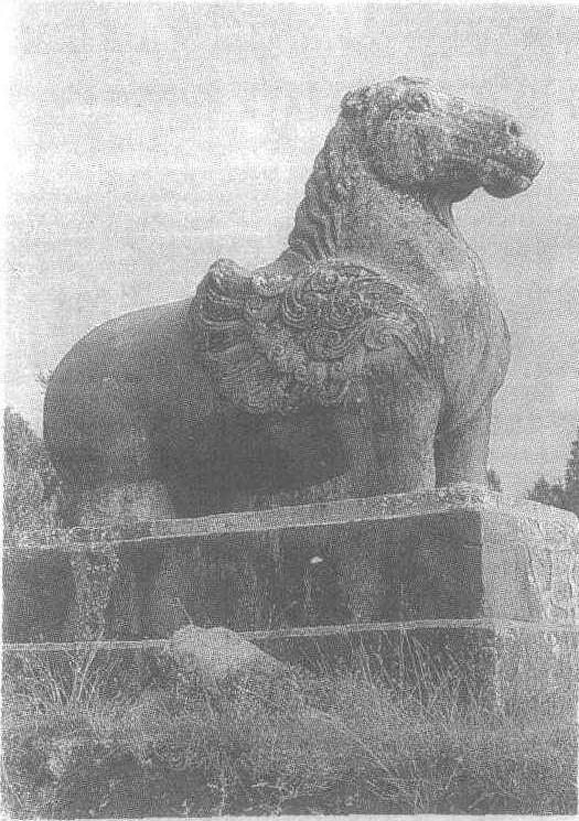 | 释义 | 乾陵石翼马唐永隆元年至嗣圣元年(公元680—684年)。高335厘米、底座长298厘米。陕西省乾县梁山唐高宗李治和武则天合葬墓乾陵神道石像生。石灰岩质。马昂首挺胸,鬃毛绺绺垂披,双肩凸雕翻卷的波浪形羽翼,柱尾下垂,威然挺立。此翼马集写实性、理想性、装饰性于一体,身躯、四肢以夸张的手法雕得浑厚结实,羽翼刻得曲蜷适度,线条优美,富有韵律变化,是乾陵石刻中最具特色的作品。乾陵(见“乾陵”条目)是唐代保存石雕最多,最完整的帝陵之一,至今仍存有4对石狮、1对华表、1对翼兽、1对驼鸟、6对石马、5对牵马人、10对石人,61“蕃酋”像及石碑等。
