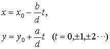 求出全部整数解的方法:由上述可知,为了求出全部整数解,只须先求出一个特解,进而归结为求出整数s,t,使得as+bt=(a,b),求s,t的具体方法参见“最大公因数”. 例如,求252x-198y=36的全部整数解.因为(252,198)=18,而18|36,故原方程有整数解.把原方程约简为 14x-11y=2 (2) 先解14x+11y=1.用辗转相除法求出s=4,t=-5,使14s+11t=1.即14×4+11×(-5)=1.所以14×8-11×10= 2,即方程(2)的一个特解为x0=8,y0=10,故其所有整数解为x=8+11t,y=10+14t(t=0,±1,±2,…). 这也是原方程的全部整数解.必须指出,一次不定方程的一般解的表达式不是唯一的.例如,x1=19,y1=24,也是原方程的一个特解,这时一般解可以表成 x=19+11t,y=24+14t (t=0,±1,±2,…). 在实际问题中,有时需要求出二元一次不定方程的所有正整数解.其一般解法是,先求出这个方程的全部整数解的表达式,然后由此求出使x>0,y>0同时成立的整数解. |