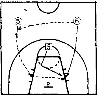 ❻投篮。(4)全场1防2练习。防守队员边防边退,以假动作进行干扰,从而造成对方失误。