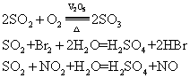 二氧化硫中硫的化合价为+4,因此它既有氧化性又有还原性,但还原性是主要的,当它与氧气、溴水、二氧化氮等反应时,均可被氧化为+6价:
