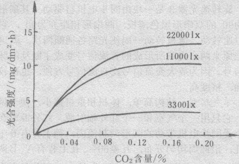 不同光照度条件下小麦苗光合强度和CO2浓度的关系 |