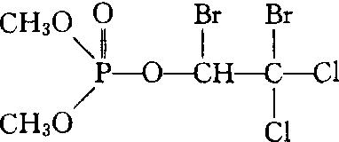 | 释义 | 二溴磷naled又称dibrom、Bromchlophos、RE4355。一种有机磷杀虫杀螨剂。化学名称:O,O、二甲基-O-(1,2-二溴-2,2-二氯乙基)磷酸酯,结构式如下。工业纯品(93%)是黄色液体略有刺激味,沸点110℃/66.7 Pa,20℃时蒸气压266mPa,旋光度(d2020)1.97,折射率(n28d) 1.5108,不溶于水,溶于有机溶剂,纯品溶点溶点26℃,在碱性溶液中易分解,日光下易分解残效期短,在棕色玻璃瓶内稳定,接触金属或还原剂时脱去溴原子变为敌敌畏,是一种触杀胃毒有机磷杀虫杀螨剂,无内吸作用,其他杀虫性能如敌敌畏。