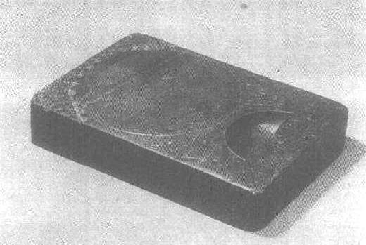 | 释义 | 云星狱月金星歙石砚清。长23厘米,宽15.5厘米,高4厘米。天津市艺术博物馆藏。歙石是安徽歙州婺源县罗纹(尾山)石,色泛碧绿,内含云母细片,光色灿烂,耀如金星散落,故名,又名“砂金歙石”。砚作长方形,面上镌刻半轮明月隐没浮云之后,一颗颗散落金星像眨着眼睛,江崖边奔腾的江水烘托着旭日。景色壮观,绚丽;隐落的明月作砚池,圆圆的太阳作砚堂,其构图自然大方,依势而成,堪称歙砚中之精品。