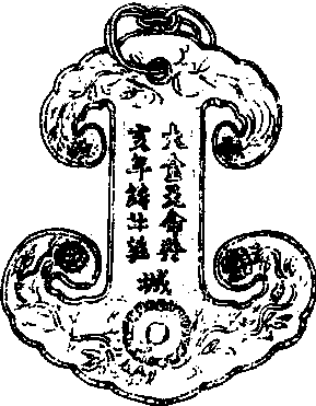 | 释义 | 云版后金时代报警器具。首尾为云朵状,故称云版。云版早已有之,宋太祖曾“以鼓多惊寝,遂易以铁磬。”宋时的铁磬即今云版。全长55.5、上宽36、下宽44.5、厚1.2厘米,生铁浇铸。长方形版身,上竖铸书“大金天命癸亥年铸牛庄城”十一字和缠枝花纹。版上端有一可系带的圆孔,版下部铸有圆形凸点,为云版的击音处,每朵云头各铸一缠枝莲花。《满文老档》载:“(天命六年汗规定)来一二百兵敲一次,一二千兵更加紧敲,若上万兵则连续不断敲击”。此为国家一级文物,收藏于沈阳故宫博物院。 云版满文Bang,原为乐器,清代八旗军队早期曾用做传达警报的工具。相当于汉语所说的梆子。参见“大金天命云版”条。