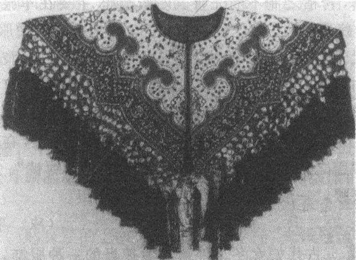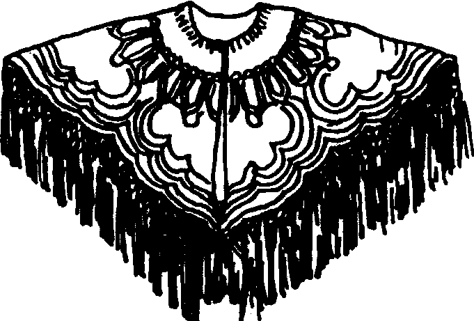 晚清云肩 云肩旦角戏剧服装蟒或宫装的装饰物。围脖一圈,大仅盖肩,绣花,周围有穗。 |