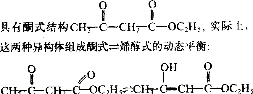 | 释义 | 互变异构hubian yigou由两种结构不同但能互相迅速转变的化学物质组成的平衡混合物的现象,称为互变异构现象。在有机化学中互变异构是一种很普遍的现象。最常见的情况是由质子的位移实现的: H—A—B 互变异构首先在酯缩合反应中发现。乙酸乙酯缩合生成的乙酰乙酸乙酯,能与金属钠作用放出氢气, ![]() 硫酸氢钠、氰氢酸等作用形成加成物,与苯肼、羟胺生成相应的腙、肟,说明它呈现羰基化合物的反应, ![]() 将乙酰乙酸乙酯溶于石油醚中,冷却至-78℃制得一熔点为-39℃固体 (n10D=1.225),它不使溴溶液褪色,与三氯化铁无颜色反应,具有酮的特征,证明为酮式异构体。如将乙酰乙酸乙酯的钠盐悬浮于石油醚中,于-78℃,通入氯化氢,则沉降出一液体(n10D=1.448),产物与上述者相反,它与三氯化铁产生紫红色,证明为烯醇式异构体。两种异构体的存在都得到证实,而且在常温下两者很容易相互转变,重新组成平衡混合物,不易分离,表现为一单纯的化合物。 互变异构两种异构体之间发生的一种可逆异构化作用。通常伴有氢原子及双键位置的转移。 |