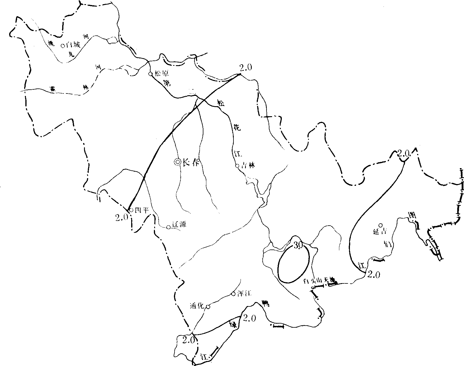 | 释义 | 五、冰雹冰雹形成在大气层结构不稳定,低层大气中水汽充足,有一定启动条件,使不稳定能量释放而产生强烈对流运动的天气里。吉林省的冰雹一般始现于3月末、4月初,终于10月末、11月初。5—6月和9月为冰雹出现盛期。此时正值农作物苗期和成熟期,因而危害较大。全省几乎年年有部分地区遭受雹灾,轻者减产,重者颗粒不收。冰雹的分布趋势,以长白山天池为中心,向其两侧递减,山区多于平原。年冰雹日数,山区一般在2—4天。其中长白山4天以上,长白山天池达11. 5天,为全省之冠。延吉盆地及通化以南地区,少于2天,是东部山区雹灾最少的地区。平原地区冰雹较少,多在2天以下,由东向西递减。如德惠、农安为1.8天,乾安1.5天,镇赉只有1天。但因冰雹出现的范围较小,气象站不可能观测到所有出现的冰雹,所以冰雹出现的实际天数,远多于上述数字,见图1-5-1。