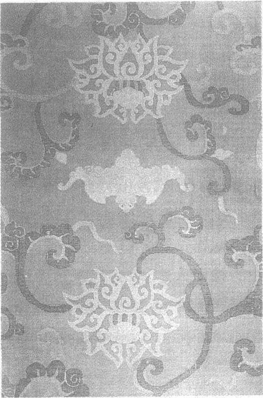 | 释义 | 五彩蝠莲妆天鹅绒清。纵220厘米,横66厘米。江苏省南京博物院藏。天鹅绒,亦称“毛卷绒”,是一种绒底缎花或缎地绒花的丝织工艺品。经、纬丝都先经精练、染色,织造时用部分经丝在织物表面形成横向排列的紧密毛圈,然后根据花纹图案,将部分毛圈割断成为毛绒,由毛圈和毛绒构成花纹图案。此绒上织弯转生动的绿色缠枝,衬托出鲜红饱满的荷莲,一只金色蝙蝠展翅其间,构成一幅金彩夺目具有民间风格的福连图。