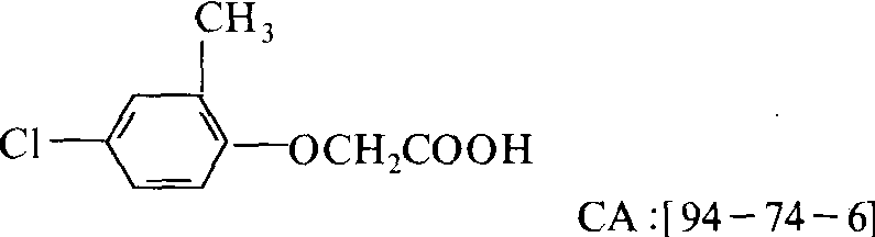 性能 纯品为白色结晶固体,熔点118~119℃室温下水中溶解度为825毫克/升,易溶于乙醇、乙醚等有机溶剂。它的碱金属和有机碱的盐易溶于水,但能被硬水沉淀。碱金属溶液呈碱性且能腐蚀铝和锌。工业品有酚味。大鼠急性口服LD50值为700毫克/千克,小鼠为550毫克/千克。10毫克/升浓度对鱼安全。其杀草特性和选择机理与2,4-滴等激素型除草剂类同。 应用 本剂易为植物根和叶部吸收,其除草效果优于或等于2,4-滴,在低温下使用效果好于2,4-滴。用于水稻、麦类、玉米等禾谷类作物外,还可用于亚麻、豌豆、草坪和非耕地中苗后茎叶处理,防治多种一年生和多年生阔叶杂草。一般作物田用药量每公顷0.25~2.0千克。应用适期:小麦分蘖盛期,玉米、高粱4~5叶期,亚麻苗高10~15厘米。水稻分蘖盛期喷药用药量要低于旱田,在寒地稻区应用比2,4-滴安全。玉米等大粒种子可利用位差选择于播后苗前土壤处理。可与五氯酚钠、除草醚、敌稗、杀草丹、扑草净等混用,以扩大杀草谱,提高除草效果。 2甲4氯MCPA苯氧乙酸类激素型内吸传导除草剂。化学名称:2-甲基-4-氯苯氧乙酸。化学结构式如下。纯品为无色无臭结晶固体,熔点118~119℃,难溶于水,易溶于乙醇、丙酮等有机溶剂。2甲4氯呈弱酸性,与碱作用生成2甲4氯钠盐,易溶于水,吸湿后易结块。水溶液呈碱性,对铝、锌有腐蚀作用。2甲4氯可被植物的根、茎、叶吸收,导致茎叶扭曲,根变形,丧失吸收水分、养分的能力,逐渐死亡。在禾本科植物体内易被代谢而失去毒性。适于水稻、小麦、大麦、玉米等作物田使用。防除藜、蓼、苋、苍耳、刺儿菜、野舌草、问荆、野慈姑、扁杆藨草、大巢菜、繁缕、荠菜、猪殃殃等一年生阔叶杂草。对人、畜低毒,大白鼠急性口服LD50为700 mg/kg。