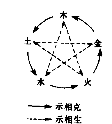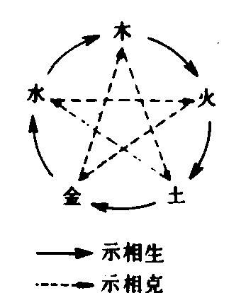 注: 六腑包括三焦。 基本规律 五行学说是以五行之间的相生、相克等作为探索事物之间的相互联系的手段, 以及在此基础上所体现出来的统一性、完整性和自我调控机制。在中兽医学中, 其主要作用有两个: 一是通过正常的生克制化规律说明事物正常的相互孳生、相互制约的关系; 二是通过反常的相乘、相侮说明反常的病理现象。 五行的相生相克 五行相生 相生是指一类事物对另一类事物具有促进、助长和孳生等作用。五行的相生规律和次序为:木生火, 火生土, 土生金, 金生水, 水生木。正是依赖于这类孳生和促进作用, 自然界才能繁荣茂盛, 动物的生命过程才能生机勃勃。 五行相克 相克又称相胜, 是指一类事物对另一类事物具有抑制、约束的作用。五行的相克规律和次序为:木克土,土克水,水克火,火克金,金克木。正是由于这类抑制和约束作用,自然界和动物体生命过程既能在正常情况下表现出蓬勃生机,又不至于过分亢奋转而为害。 五行生克的相互联系 五行学说认为,事物之间的相生和相克是密切联系的,体现为生中有克和克中有生。这样, 自然界才能维持生态平衡,动物才能维持生理稳定。因此,五行中的任何一行,都有“生我”、“我生”和“克我”、“我克”四个方面的联系。如就木而言,木之“生我”者为水,木之“我生”者为火;木之“克我”者为金,木之“我克”者为土。 五行的相生关系又可称为“母子”关系。如以火为例,由于木生火,故火之“生我”者为木;由于火生土,故火之“我生”者为土。因此,木为火之“母”,土为火之“子”,木和火、火和土均为“母子”关系。相克关系又可称为“所不胜”和“所胜”。“所不胜”者就是“克我”者,“所胜”者就是“我克”者。以火为例,由于火克金,故火之“我克”即“所胜”者为金;由于水克火,故火之“克我”即“所不胜”者为水。“生我”、“我生”虽是五行中的相生,但生中有制。“克我”和“我克”虽是五行中的相克,但克中有生。这样,相生间有相克,相克间有相生,如环之无端,生化不息,维持事物之间的协调平衡(图1、2)。