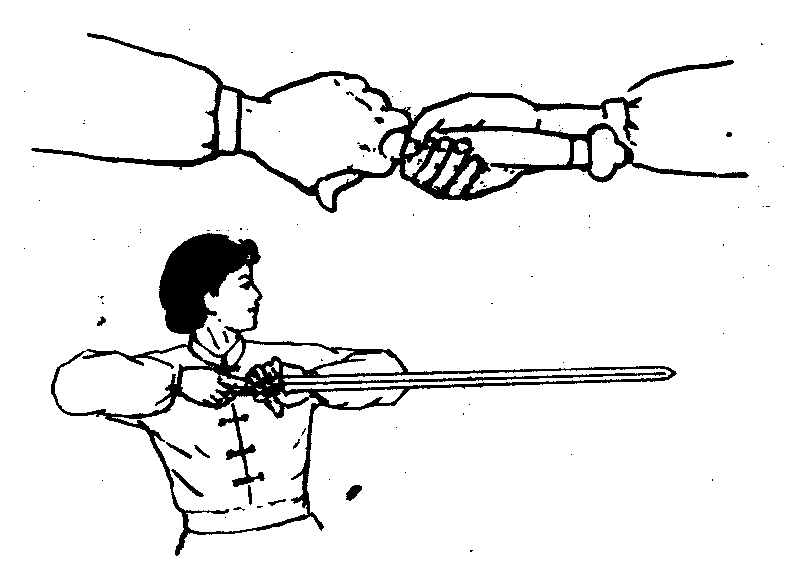 | 释义 | 交剑剑从持剑手传到非持剑手的方法。动作过程:左手持剑交于右手时,左手握剑格,左前臂内旋,当右手握住剑柄时左手松开,成右手持剑。(图2—4—95)右手持剑交于左手时,右手握剑柄,当左手握住剑格时,右手松开,成左手持剑。在现代剑术套路中常用抛接剑进行交剑(即持剑手将剑抛起,另一只手将剑接住)。动作要领:两手协调配合,互相避让,不要相互抓握。左手持剑交于右手时,两虎口相对,两手心相反。右手持剑交于左手时,两虎口都向上,手心相反,手背相贴。