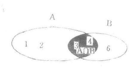 图2 如果两个集合A和B的交集A∩B=Φ,那么就称集合A和B为不相交集(或说A和B不相交)(见图1). 交集jiaoji即由两个集合A、B的共同元素所组成的集合,记作A∩B。例如:A={小芳的玩具},B={小芳的玩具汽车},则A∩B={小芳的玩具汽车};又如:A={1,2,3,4},B={3,4,6},则A∩B={3,4},用韦恩图分别表示如下: