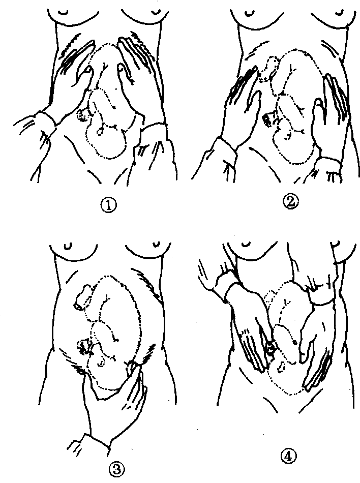 图6.4-2 胎位检查的四步触诊法 |