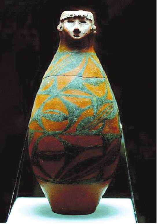 人头型器口彩陶瓶 |