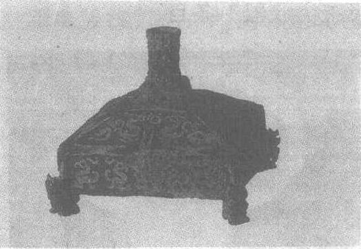 | 释义 | 人形足器铜座战国。通高16厘米,边长6厘米,承插柱高65厘米,座体高7厘米。重10公斤。1981年浙江省绍兴市狮子山出土。浙江省博物馆藏。此器作方形。由承插座、座体和垫脚三部分组成。承插柱上段为四面八角体,下段弧扩成四面体,中空,四面各饰螭首相背的蟠螭二条,缠绕的蟠体间留出上、下两个梢钉孔,便于插杆固定。座体的铜质外框上部为盝顶,每面饰阴刻宽体凤纹六组,原镶嵌绿松石,已脱落。铜框之内浇灌铅汁,与承插柱下端相接。座体四角下端各有凸榫一个,用以连接垫脚。垫脚为四个人体跪像,人体的背部有圆形榫孔,与座底的凸榫相吻。跪像上下身饰云雷纹,双手和两膝着地,引颈昂首,双目凝视前方,头戴翘角状额饰,头顶左右侧突出一斜向角状髻,腰缠宽带,五官及身段比例适度,表现了奴隶社会中奴隶的形象。此器当为战国早期之物。