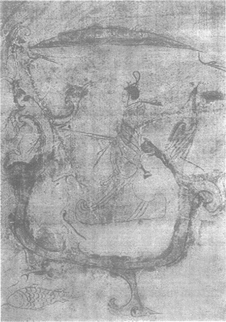 | 释义 | 人物驭龙帛画用毛笔画于丝织的帛上,平涂施色。高37.5厘米,宽28厘米,1973年发现于湖南长沙子弹库楚墓。画面中心绘侧身挺立的男像,束发高冠,结系于颌下,身穿长衣,衣袖宽肥; 衣裙飘拂于地面遮护双足。腰侧佩剑,剑体不长,约略相当于人体的1/3左右。男像下是 一条身躯庞大,反卷成U字形的巨龙,巨龙的首尾上翘; 形似小舟,龙首下系长辔,男像双手执辔驭龙前行。其下有云朵承托,下前侧有 一条向前游动的鲤鱼,似表明男像驭龙在天河中破浪前进。华盖下的流苏、人像凳下的系带都向后飘拂,更显出向前疾进的态势,人像身体微向后仰,长辔紧紧绷直,表明驾驭飞驰向前的长龙要花费很大的力气。龙尾端加绘一只苍鹰,它昂首以单足傲然挺立,悠闲稳定,与飞腾的人和长龙形成动静对比。