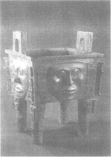 人面纹方鼎 商周青铜器以兽面纹作主题纹饰较为常见,人面纹饰稀有珍贵,尤其是此鼎以四个相同的人面纹装饰器体的主要部位,更加奇特,有的专家认为这组人面纹有爪而无身,属于传说中“有首无身”、贪吃人的凶兽饕餮一类怪神。究竟为何采用如此写实的人面纹作主题装饰,仍是个谜。 从艺术形上看,此器运用反复、对称的装饰手法,布局严密,写实与抽象纹饰结合。四组相同的纹饰集于一身,不仅强化了装饰主题,而且给人视觉上以强烈的冲击,达到特定的装饰效果。反映出商代晚期青铜制作者已具备了较强的写实能力和形象概括能力。 |