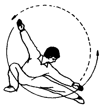 步型拳动作之六。为仆步与穿掌同时完成的基本动作。