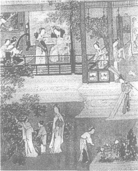 故事描写杨贵妃清晨梳妆打扮的情景。她聚精会神对镜梳妆,众多宫女都在为她忙碌,有的为她采摘新花,有的在浇花,有的为她弹奏音乐,有的为她擎盥洗巾,连小狮子狗都在为她跳跃。环境优雅,春花盛开,更衬托出贵妃青春的魅力。 之三: 捉柳花图 故事描写诗人白居易看孩子们捉柳花的情景,表现出 一种天真的稚气。故事的引出是,白居易先写了《别柳枝》诗 “两枝杨柳小楼中,袅袅多年伴醉翁。明日放归归去后,世间应不要春风。”刘禹锡继和云 “春尽絮飞留不得,随风和去落谁家。” 白居易见到刘诗后,复作 一首戏答,诗云: