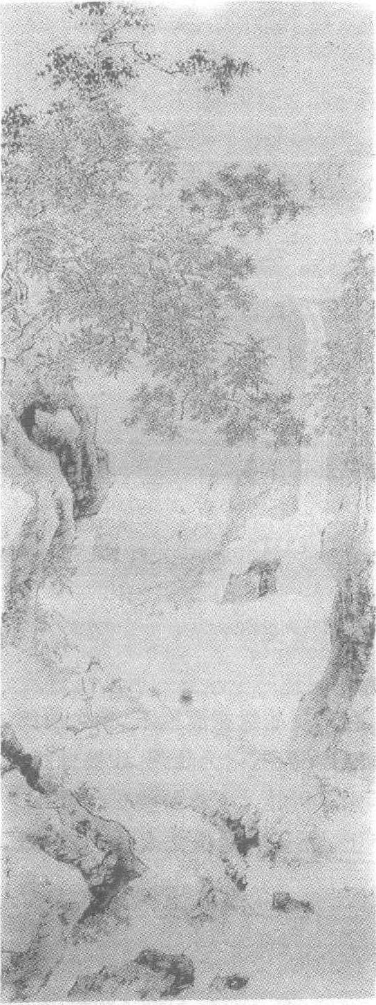 | 释义 | 仇英停琴听阮图轴明。仇英绘。纸本设色。纵112.5厘米,横43厘米。广东省广州美术馆藏。仇英(公元1482—1559年),字实父,号十洲,江苏人,寓居苏州。曾从周臣学画,天赋不凡,深得理法,设色、水墨、白描,无所不精,知名于时。他还是临摹古画的高手,现存作品中所临仿的历代名迹非常广泛,落笔乱真。在技法的继承上是多方面的,博取众长,山水多学赵伯驹、刘松年,笔法细润多变而风骨劲峭,箫疏简远处以意涉笔,风度典雅。他的作品,有的是独创,有的是旧本改绘。从题材到艺术风格与民间绘画有较多联系。同时,又接触许多古代名迹,受当时文人绘画薰陶,作品也能满足士大夫的优雅口味。仇英的绘画风格,以“秀雅纤丽”的院体著称,但又能越出院体画的藩篱,精工之作不失文雅。仇英人物画功力深,影响大,尤擅作仕女,精丽艳逸,端庄华贵。在明代,独以绘画艺术精妙与沈周唐寅、文徵明等画家相抗衡,为明四大家之一。此图描绘的是两个文人雅士在高山流水的环境中,对坐相互奏乐。一瀑布从高山上直泻下来,流入山间小溪,水声潺潺。半山腰上的大树,枝叶葱绿而茂密。在小溪旁大树下,弹阮者认真地弹奏,优美动听的阮咸音乐,使操琴者停琴听阮。从操琴者聚精会神听阮的神态,表现出了阮咸音乐的优美。作者将高山流水、寂静的山林、美妙的音乐,有机结合起来,动中有静,静中有声,山水人物巧妙结合,给人以无尽的暇想和美的魅力。整个画面画意集中,构图严谨,设色柔和淡雅,风韵雅逸。山石用小斧劈皴,富有质感,层次分明,细润绵密。人物用笔精细,刻画生动。此图是仇英传世作品中的精品。此图曾由明人方鼎收藏。《书画鉴影》著录。