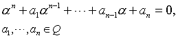 例如, ![]() ,i都是代数数.它们分别适合方程x2-2=0,x2-3=0,x2+1=0 特别,所有有理数都是代数数.但不是所有复数都是代数数.e,π都不是代数数,它们都是超越数.若a1,a2,…,an都是整数,而数a适合 an+a1αn-1+…+an-1α+an=0 则称α是一个代数整数.例如, ![]() ,i都是代数整数.(-1+ )/2也是代数整数,它适合x2+x+1=0. |